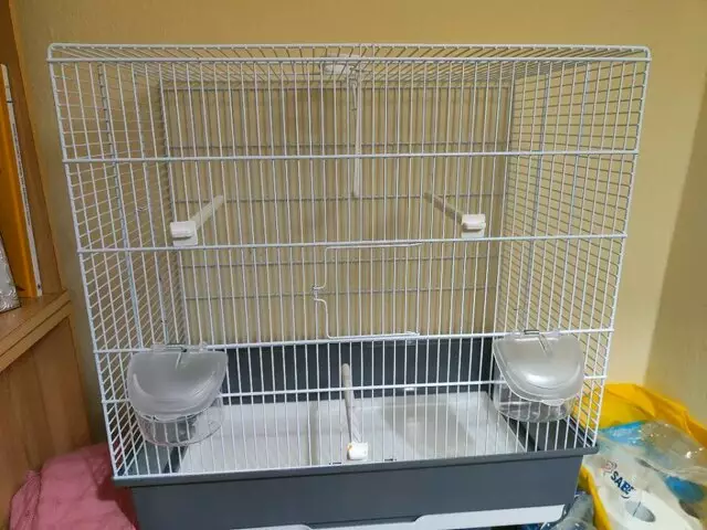 Vendo la jaula que aparece en la foto. Viene con columpio y tres palos, además tiene dos puertas de apertura, una frontal y otra lateral. Las medidas son: Largo=55cm. Alto=53cm. Ancho=35cm.