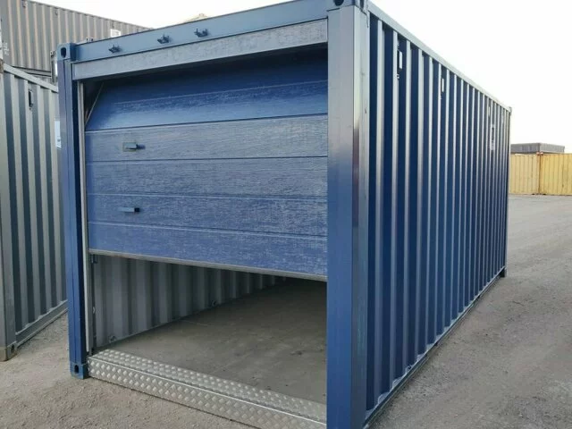 Un contenedor con puerta de garaje ofrece usos versátiles, como proporcionar un garaje portátil para vehículos o equipos, crear un taller seguro o un espacio de almacenamiento para herramientas y materiales, o como refugio temporal para equipos de emergencia.