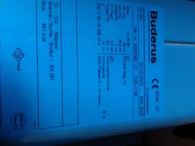 Caldera de gasoil en perfecto estado, funcionando. Revisión y mantenimiento realizados, con limpieza interior y exterior. Se incluyen termostato e instrucciones. Ver placa y características en las fotografías.