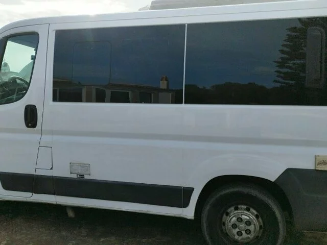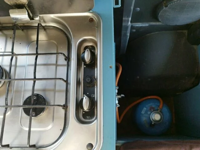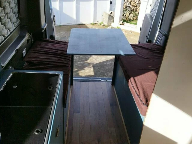 Furgoneta camperizada y homologada, con ITV recién pasado (enero). Esta equipada con cocina, pica, toldo, sistema de aguas con deposito de limpias (75 L) y de grises, instalación de gas, cojines a medida para la cama / bancos, segunda bateria con dos enchufes a 12 V, cable para enchufar la furgoneta a corriente externa (con dos enchufes de 220 V). Todos los cristales de detrás tienen película tintada. Cada uno de los cristales del furgón tiene su correspondiente oscurecedor a medida (a algunos de delante le falta alguna ventosa).