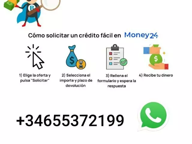 PRÉSTAMOS RÁPIDO Y SEGURO Prestamos urgente de 2 000 euros hasta 800.000 euros a un tipo de interés anual del 2% estoy dispuesto a todas las personas serios interesados. Hago sus préstamos generalmente en los siguientes ámbitos: * préstamos urgentes * préstamos agrícolas. más fácil. información, militopolinita@gmail.com whatsapp : +34 682 86 32 48