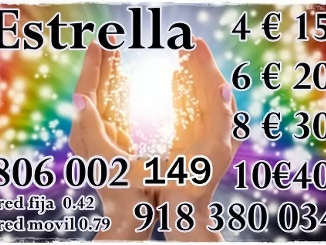 806002038 y 806002149 Tarot Económico: 0,42€ Por Min y 932424782 y 918380034 - 4€ 15 mts. 6 € 20 mts. 10€ 40 mts. 12€ 45 mts 20 € 90 mts todas tus preguntas No dudes en consultarme, siempre tendrás una respuesta a te el poder de mi Videncia, las Gemas, las Runas y diversos Tarots y Oráculos que me ayudaran visualizar todo lo que te preocupa y darle solución precisa....... te esperamos las 24 horas del día. Sólo mayores de 18 años. Servicio prestado. M.A.L. Apartado de correos 164 (46002) Valencia