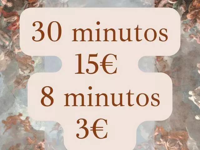 Es posible que él esté enamorado de ti y tú sin saberlo. Quieres saber cuando dará el paso? Tal vez esté pensando en volver a tu lado en lo que tu lo ves todo acabado Te está enganando con otra persona y no te has enterado? basta ya! estérate y dejalo en evidencia. Va a pedirte perdón por todo lo que te hizo? Descúbre sus intenciones reales. Tantas cosas que das por hecho y que no sabes te desvelaré con la verdad y total sinceridad. y de inmediato te atenderé consultando mis cartas y meditando tras mis dones de videncia, 30 minutos 15€ 8 minutos 3€ whatssap: +34 722 295 451