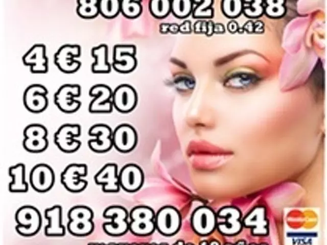 806002038 y 806002149 Tarot Económico: 0,42€ Por Min y 932424782 y 918380034 - 4€ 15 mts. 6 € 20 mts. 10€ 40 mts. 12€ 45 mts 20 € 90 mts todas tus preguntas No dudes en consultarme, siempre tendrás una respuesta a te el poder de mi Videncia, las Gemas, las Runas y diversos Tarots y Oráculos que me ayudaran visualizar todo lo que te preocupa y darle solución precisa....... te esperamos las 24 horas del día. Sólo mayores de 18 años. Servicio prestado. M.A.L. Apartado de correos 164 (46002) Valencia
