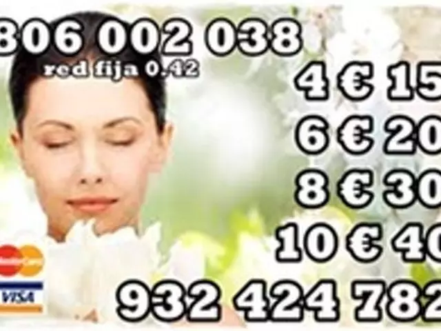 806002038 y 806002149 Tarot Económico: 0,42€ Por Min y 932424782 y 918380034 - 4€ 15 mts. 6 € 20 mts. 10€ 40 mts. 12€ 45 mts 20 € 90 mts todas tus preguntas No dudes en consultarme, siempre tendrás una respuesta a te el poder de mi Videncia, las Gemas, las Runas y diversos Tarots y Oráculos que me ayudaran visualizar todo lo que te preocupa y darle solución precisa....... te esperamos las 24 horas del día. Sólo mayores de 18 años. Servicio prestado. M.A.L. Apartado de correos 164 (46002) Valencia