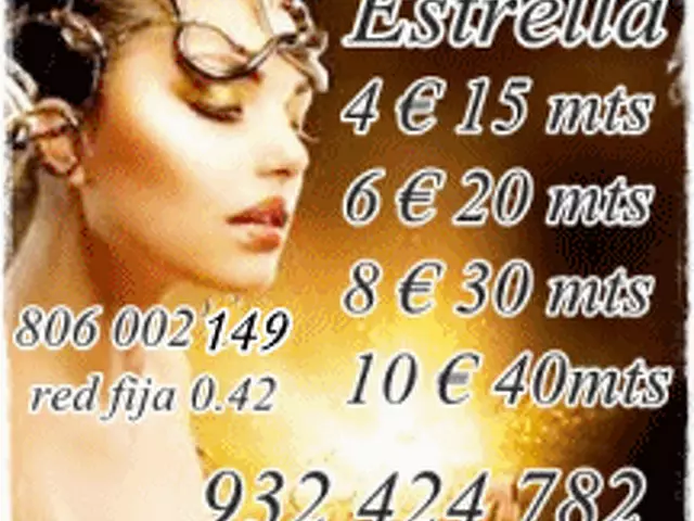 806002038 y 806002149 Tarot Económico: 0,42€ Por Min y 932424782 y 918380034 - 4€ 15 mts. 6 € 20 mts. 10€ 40 mts. 12€ 45 mts 20 € 90 mts todas tus preguntas No dudes en consultarme, siempre tendrás una respuesta a te el poder de mi Videncia, las Gemas, las Runas y diversos Tarots y Oráculos que me ayudaran visualizar todo lo que te preocupa y darle solución precisa....... te esperamos las 24 horas del día. Sólo mayores de 18 años. Servicio prestado. M.A.L. Apartado de correos 164 (46002) Valencia