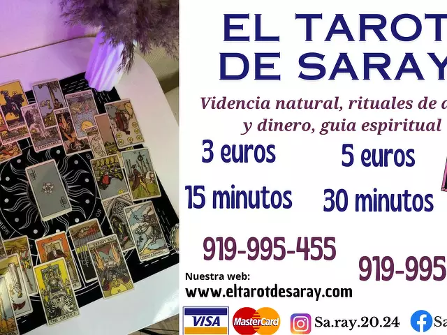 ¿Te preguntas qué depara el futuro en tu vida amorosa, laboral, economico, familiar? ¡No busques más! Nuestro servicio de tarot te brinda respuestas precisas y reveladoras. Llama ahora y despeja tus dudas. con un llamado al tarot puedo ayudarte y darte solución, al 806 002 439, o ha nuestro Tarot Visa Barata al 919 992 810 desde 5 Euros los 15 Minutos. Preci...