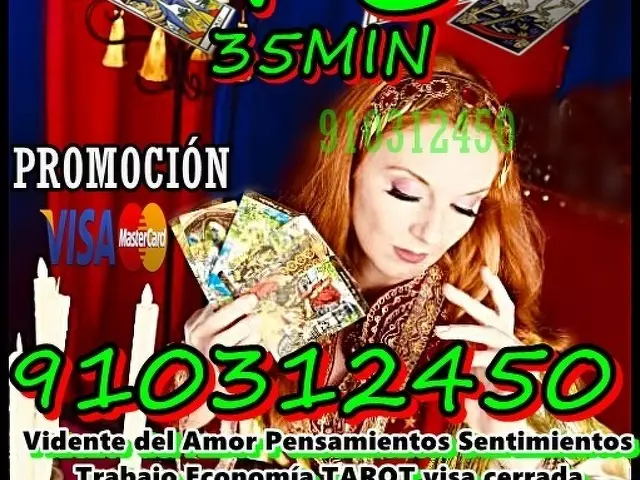 VIDENTES Y TAROTISTAS EXPERTAS EN AMOR, TRABAJO, ECONOMIA Y FAMILIA estoy aquí para ayudarte. LINEA DE TAROT Y VIDENCIA CON TARIFA CERRADA LLAMÁNOS AL ☎️ 910312450 LAS 24 /7 DÍAS SOMOS PROFESIONALES SELECCIONADAS 15 minutos 4€ 25 minutos 7€ 35 minutos 9€ 45 minutos 12€ 60 minutos 16€ 90 minutos 20€ TODA ESPAÑA Ó FUERA AL ☎️ (00 34)910312450 TARIFAS JUSTAS CON EL MEJOR SERVICIO LA LLAMADA SE CORTA SOLA- pronósticos seguros ☎️ 806002109. Coste min. 0,42/0,79 cm € min red fija/móvil. Servicio prestado por K.A.V. ap. C 164 cp. 46002 Valencia. Solo mayores 18 años tarot 806, tarot , Tarot Barato, tarot economico, Tarot Económico, tarot muy economico, tarot por v...