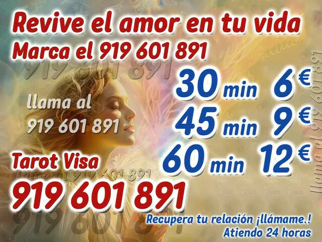 ¿Estas pasando un mal momento en el amor? Si quieres aclarar las dudas sobre esa persona que ocupa un lugar en tu vida sentimental, consulta mi Tarot y busquemos las respuestas a tus preguntas. Llama al 919601891. 10 Min - 3 € / 15 Min - 4 € / 20 Min - 5 € / 30 Min - 6 € / 45 Min - 9 €. / 60 Min - 12 €.