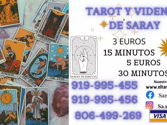 Tarot, llamame a hora y deja que fluya la energia de las respuestas claras, es el momento de saber y hacer tel : 910052777 10 minutos 3€ 30 minutos 6€ 45 minutos 9€ 60 minutos 12€