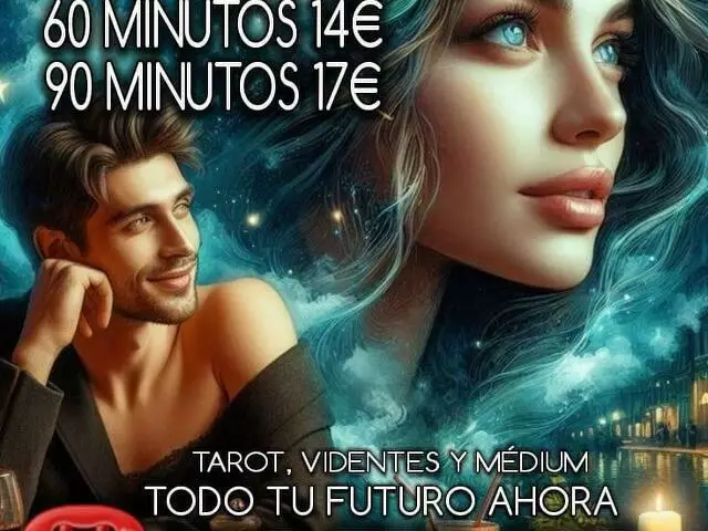 tarot y videntes Respiraras tranquila por que por fin conocerás las respuestas a esas preguntas que te inquietan, que no te dejan vivir tranquila teléfono visa 921920110 desde 10 minutos 3 euros 15 minutos 4 euros 20 minutos 5 euros 40 minutos 8 euros 60 minutos 14 euros 90 minutos 17 euros Lectura de tarot, videncia y médium reales