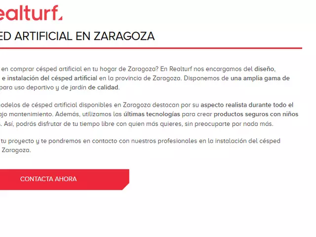 ¿Pensando en comprar césped artificial en tu hogar de Zaragoza? En Realturf nos encargamos del diseño, fabricación e instalación del césped artificial en la provincia de Zaragoza. Disponemos de una amplia gama de productos para uso deportivo y de jardín de calidad.