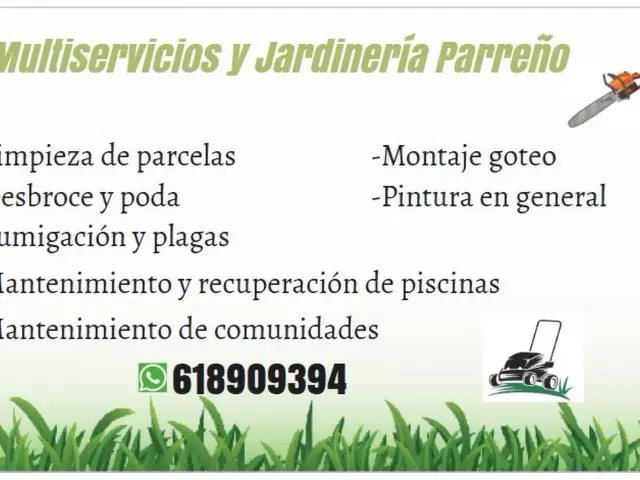 Ofrezco mis servicios me dedico en toda la zona de Alicante a la poda de árboles, limpieza de parcelas, tratamientos fitosanitarios (malas hierbas), césped, y mantenimiento de jardines y comunidades, mantenimiento y recuperación de piscinas, etc.