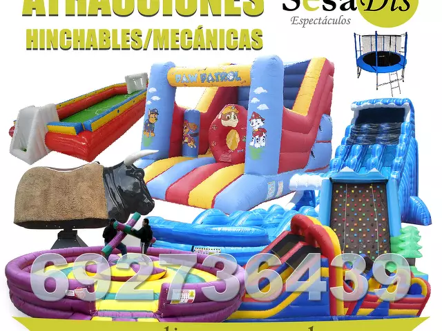 En Sesadis Espectáculos somos especialistas en el alquiler de hinchables y atracciones infantiles para todo tipo de celebraciones. Ofrecemos una gran variedad de opciones para que tu fiesta, evento o cumpleaños sea inolvidable, divertido y seguro.